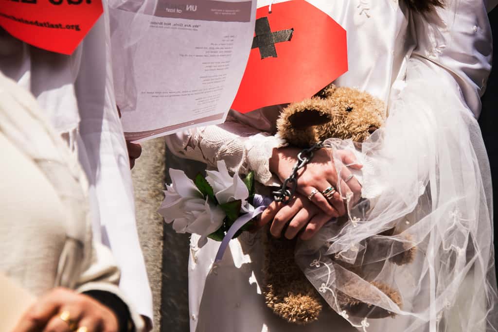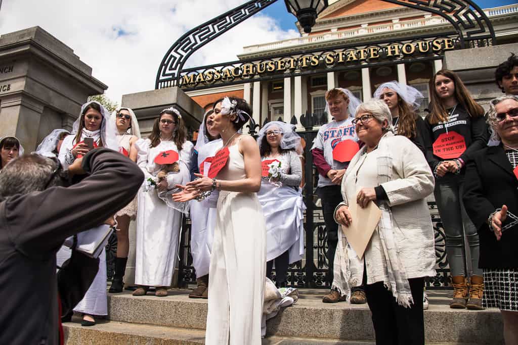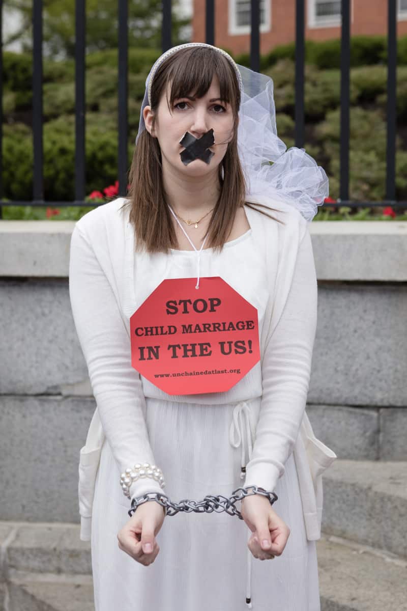 Were you among the some 20 protesters who joined Unchained At Last for a Chain-In in Boston on May 11, 2017 – dressed in bridal gowns and veils, with arms chained and mouths taped – to send a powerful message to legislators: Pass S785/H2310 and end child marriage in Massachusetts?