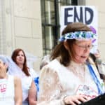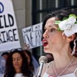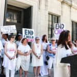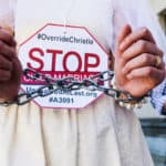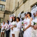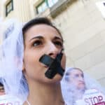 Some 30 protesters joined Unchained At Last for a Chain-In in Trenton on June 1, 2017 – dressed in bridal gowns and veils, with arms chained and mouths taped – to send a powerful message to New Jersey legislators: override Gov. Christie’s conditional veto of A3091, the bill that would end child marriage in New Jersey.